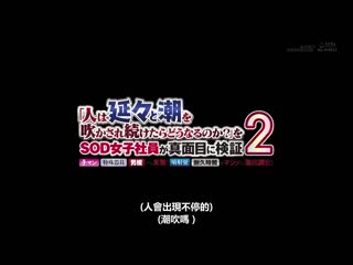 簡介: 在感官遮蔽的狀況下受到性的刺激,身體會有什麼反應呢,從SOD社內選出2名敏感女職員和1位實驗員,讓她們進行潮吹幾次都不會停的耐久測試!考慮到測試者的體力,設下30分鐘的限制,用機器,雙手與肉棒強制高潮.進入突破極限的高潮地獄!